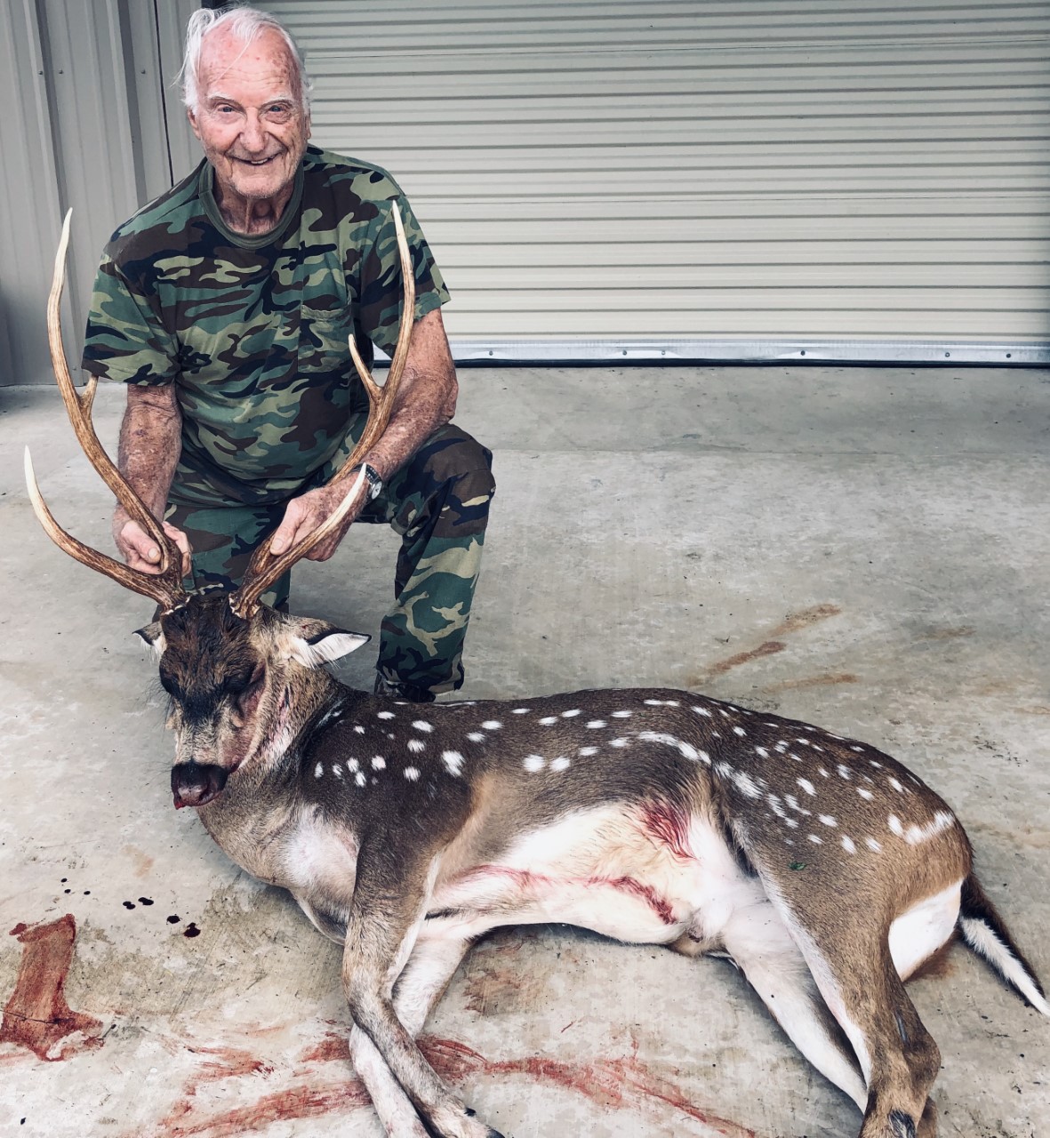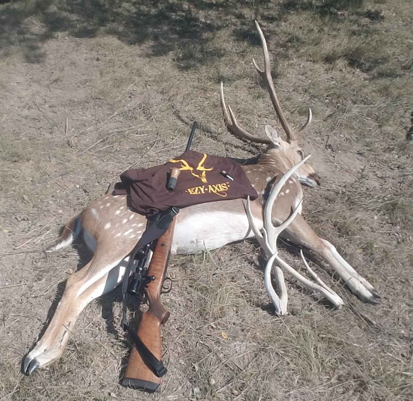 My 87 year old uncle shot his first axis called up with the phenomenal EZY-Axis buck call. Buck was called up at 7:30 pm after sitting in blind for no more than 15 minutes. This thing works. Hunting in south texas on a ranch with thick cover, have never found anything to draw the axis out until now. - Steve Albert