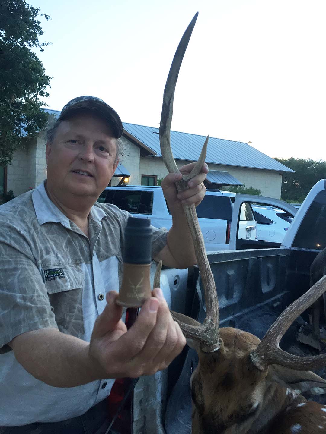 I bought your calls and wanted To report back that the first time I used it it worked!! After being in a blind for three hours I said what the heck do I have to lose. Hit it three times and within five minutes a nice axis buck stepped out. I’ve had axis at my place for almost ten years now here in Lousiana and they are hard to hunt. Even in a 1000 acre high fence. Have not found a food source besides corn that brings them in. And even corn is hit or miss. Just wanted to say good job! - Scott Gurney